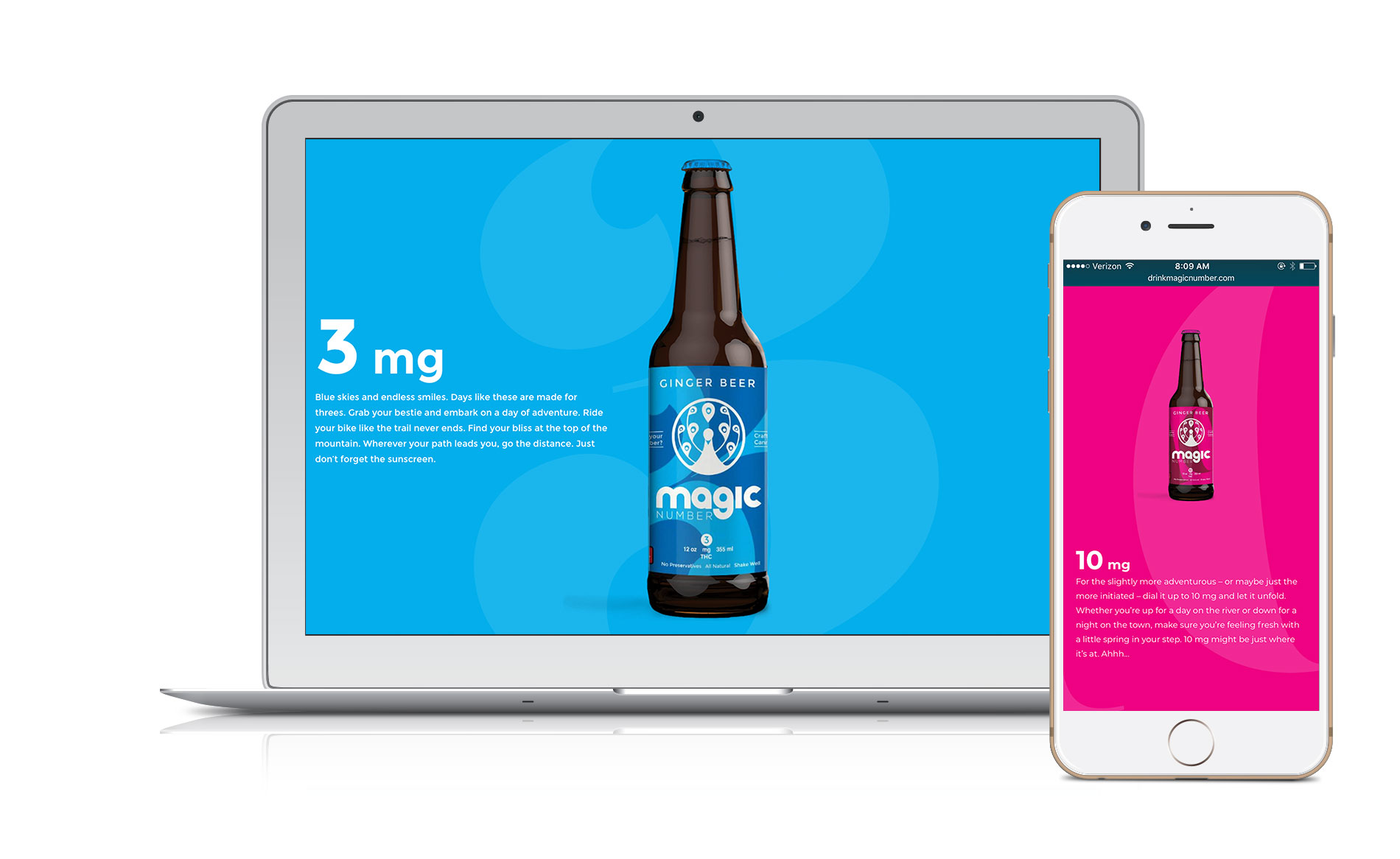 Bend, Oregon beverage company, Magic Number, is revolutionizing the Oregon craft beverage scene with its cannabis-infused beverages. Offered in a variety of doses, Magic Number beverages are designed to help you tailor your experience to the occasion. Astir partnered with Magic Number from the beginning, creating a solid strategy that flowed into a playful brand. We designed a logo and wrote copy that screamed quality and hinted at magic. The bright colors and clear communication illustrated the the attitude of the minds behind Magic Number, where there is a desire to inform the customer, while inspiring new comers to take a fresh look at cannabis. We developed a website that brings the drinks and story to life.